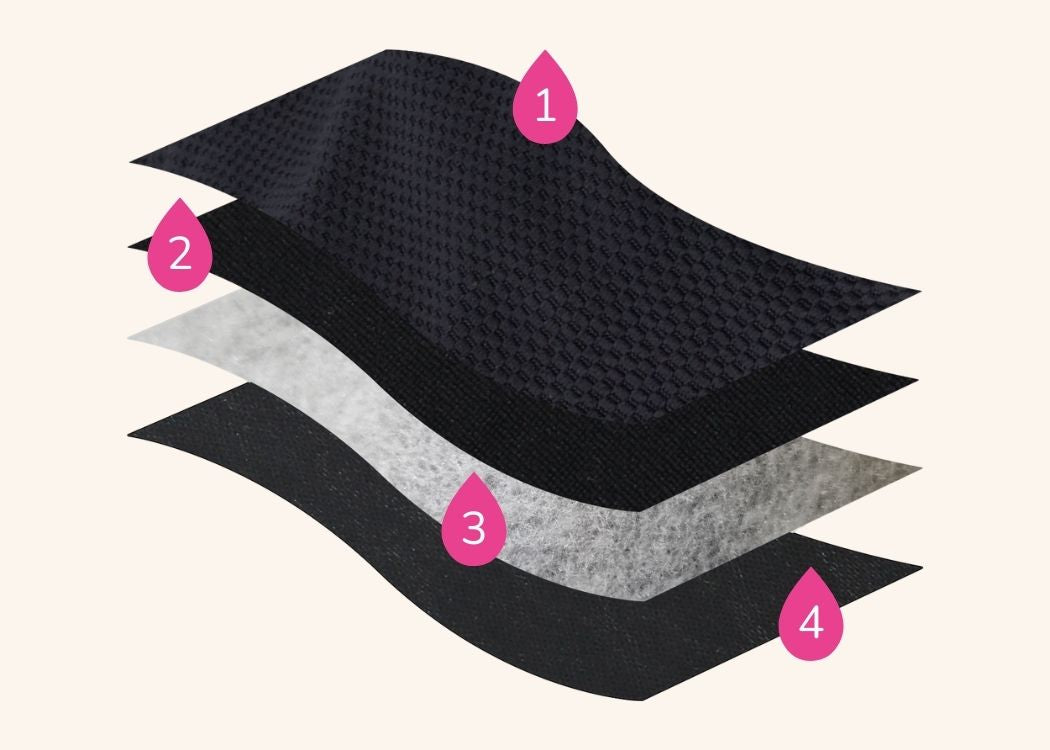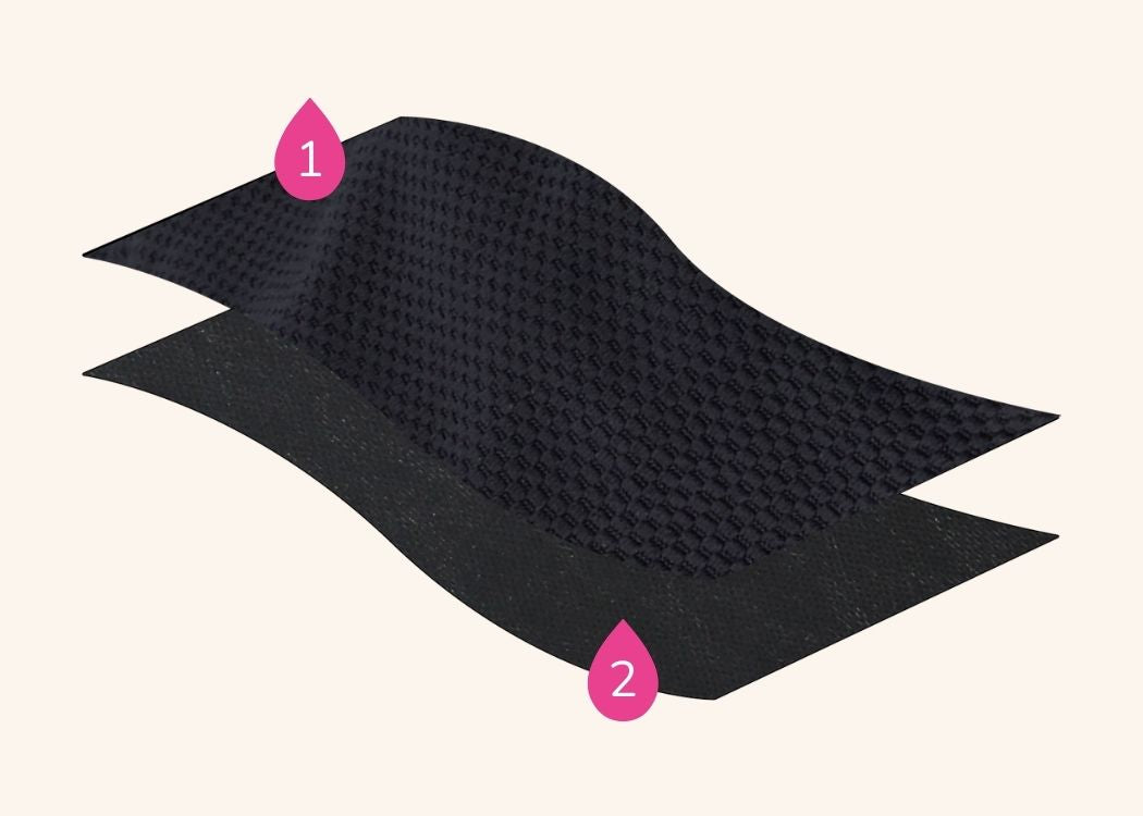 1. In het kruisje is een speciale mesh stof verwerkt die lekken en geur opvangt en insluit. Deze mesh stof heeft ook een waterafstotende laag waardoor vocht niet in het buitenbroekje komt.