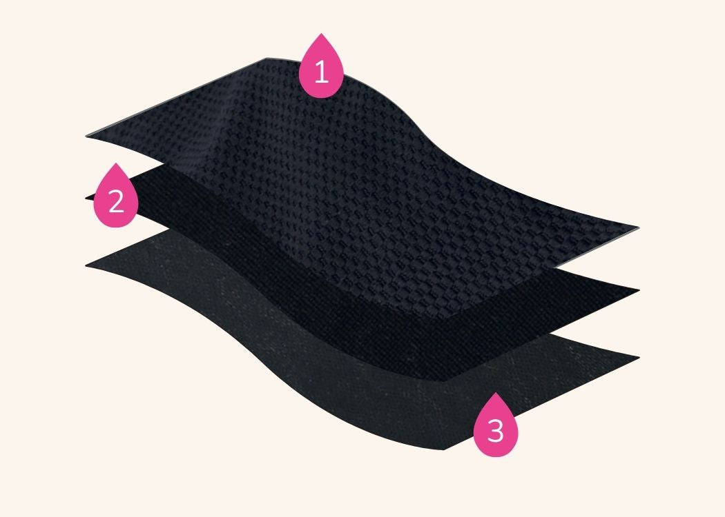 3. Badstof - De derde laag is ook een absorberende badstof die is gemaakt om dunnere vloeistoffen beter te absorberen. Dit is dus extra goed voor dagelijkse lekkages.