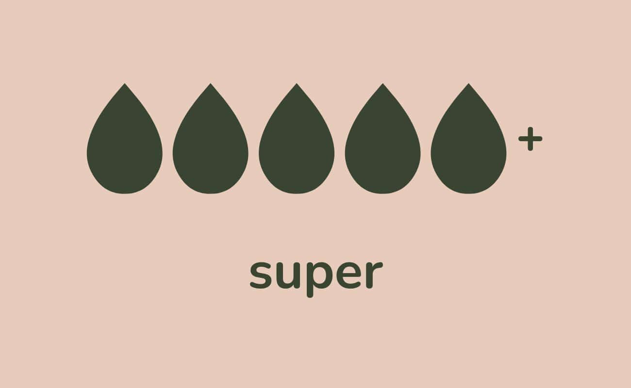 Our menstrual and incontinence underwear come in absorptions of 1 up to 5 or 6 tampons. Check below which levels suit your flow of menstruation or urine loss. This can of course differ per day of your period.
