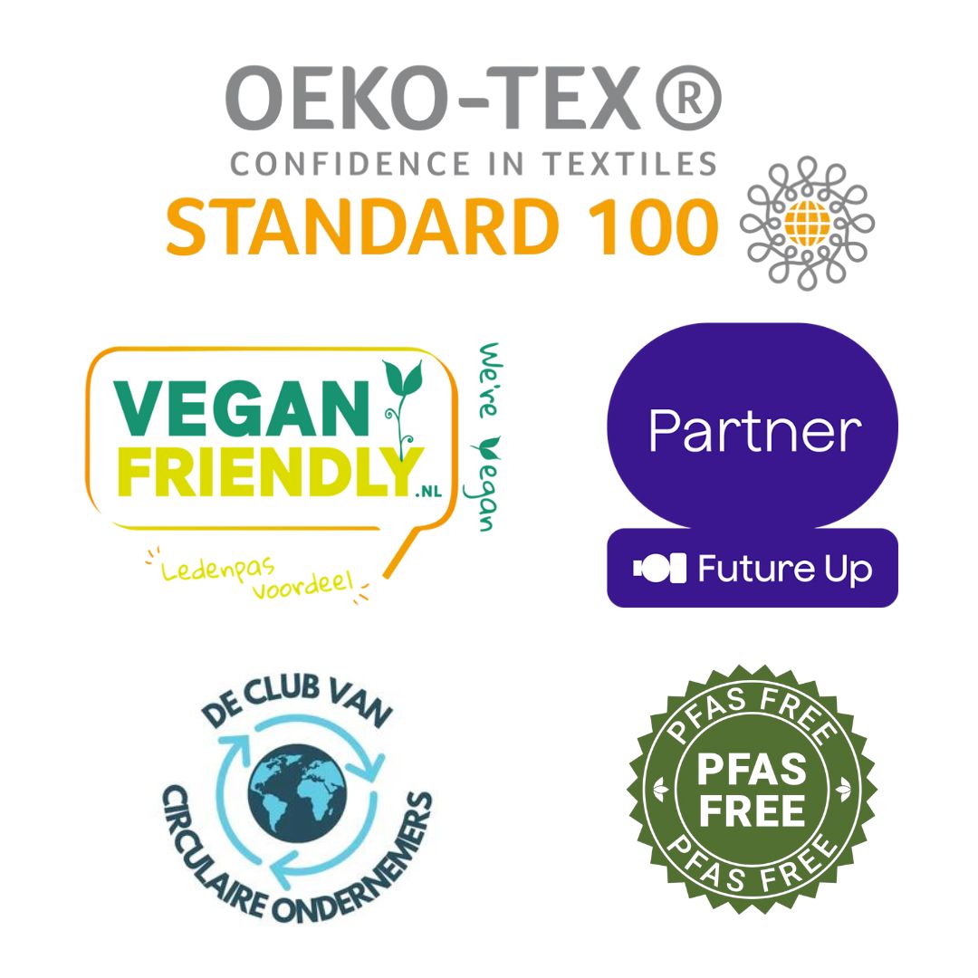 Dit zijn allemaal ademende stoffen, die zijn voorzien van een antibacteriële wassing waardoor er amper geur vrijkomt en het heel natuurlijk en hygiënisch is.